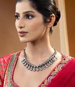 Pair this silver necklace for women with ethnic attire like sarees or lehengas for festive occasions, or style it with solid-toned contemporary outfits to highlight its bold oxidised design.Specifications [-]