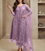 • Product Id : 4550506 • Package Details : 1 Top/1 Bottom/ 1 Dupatta • Type : Kurtis • Occasion : Festive • Fabric : Art Silk • Work : Embroidered • Type : Thread Work • Look : Designer • Sleeve : Quarter Sleeve • Neck Style : Round Neck • Color : Mauve • Stitching : Stitched Payments [+]