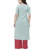 Trendmalls Sky Blue Embroidered Cotton Ethnic Party Wear Festive Casual Wedding Chikankari Premium Kurtis & Kurta