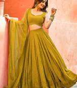 Mustard Yellow Sequins Lehenga Choli With Net Dupatta