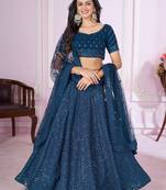 • Fabric : Net • Color : Blue • Work : Sequins • Length : 2.25 Mtr Lehenga Details