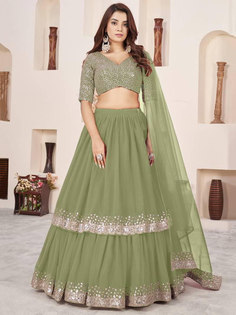 Wonderful Olive Sequins Georgette Wedding Wear Lehenga Choli