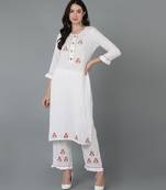 Vahson Women Cotton Rayon Kurta Pant Set White Stitched