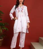 Women's Elegant White Handcrafted Cotton Chikankari Ethnic Motif Kurta Set Stitched