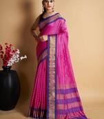 Pink Silk Blend Saree With Striking Pallu & Blouse