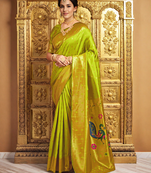 Lime Green Paithani Silk Blend Handwoven Saree With Designer Pallu And Unstitched Blouse