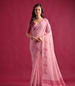 Pink Keri Weaving Pallu With Butti Weaves Saree