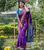 Purple All Over Zari Woven Weaves Saree