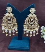 Elevate your ethnic look with these stunning gold-plated Chandbali earrings featuring intricate Kundan work and elegant pearl drops. Perfectly handcrafted, these earrings are designed to add a regal touch to your traditional attire. Whether it's a wedding, festival, or special occasion, these statement earrings effortlessly complement lehengas, sarees, and anarkalis. Lightweight yet luxurious, they make a perfect gift for loved ones or a must-have addition to your jewelry collection.