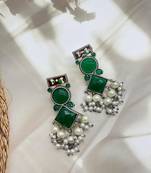 German Silver Green Earrings