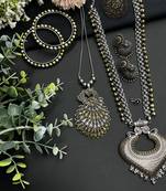 Oxidised Dual Tone Beautiful Handmade Temple Style Jewellery Combo Set For Her