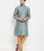 Men's Aqua And Rose Gold Silk Blend Kurta Pyjama Set