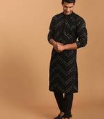 Fabric: Georgette | Contents: a Mirror work Black Georgette Kurta With Pyjama Set. Mirror work Black Georgette Kurta With Pyjama Set. Medium length and Regular Fit. Our Kurta fitting is usually slightly relaxed compared to a Regular Shirt's fitting. Select your Kurta size based on your chest dimension. Note: if one has a heavier abdomen compared to chest then he should select one size bigger kurta. Our Churidar Pajamas have drawstrings and a separate pocket attached to it. The pyjama bottom mohri is usually kept narror to bring out the best possible churi look. Although popularly known as Kurta Pyjama but this ethnic wear for men can be suitably used as pathani suit for men stylish, jubba for men, panjabi for men or khan dress for men stylish. Most material used for kurta under 300 tensil count only. These are good alternative to a Indo western or a sherwani. Check out for kurta for mens new looks, kurta for mens wedding, punjabi kurta for men.All our kurtas have five inches loosening over the body measurement. So if your chest round measurement is 38 inches then you should go for a 38 (Medium) size Kurta which will have a garment ready chest measurement of 43 inches. We offer six sizes - Small = 36 (Chest - 41), Medium = 38 (Chest - 43), Large = 40 (Chest - 45), X- Large = 42 (Chest - 47), XX - Large = 44 (Chest - 49) and XXX - Large = 46 (Chest - 51). Suitable for: Party, Weddings, Regular Wear, Celebrations, Occasions, Festivals, Lohri, Pongal, Makar Sakranti, Baisakhi, Holi, Eid, Raksha Bandhan, Dussehra, Diwali, Navratri, Pooja, Christmas, Onam, Ganesh Chaturthi, Janmasthmi and Gifts for Mens.Wash Care Instructions: Dry Clean preferably or cold light wash.Disclaimer: We have made a consistent effort to make the colors and finishes similar to the image of the products you see on screen. However, the actual product and the images on the website can differ! Customer's discretion is advised.