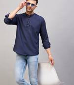 Fabric: Cotton Blend | Contents: a Cotton Short Shirt Style Solid Kurta With Buttonhole Detailing.Cotton Short Shirt Style Solid Kurta With Buttonhole Detailing.Medium length and Regular Fit. Our Kurta fitting is usually slightly relaxed compared to a Regular Shirt's fitting. Select your Kurta size based on your chest dimension. Note: if one has a heavier abdomen compared to chest then he should select one size bigger kurta. Our Churidar Pajamas have drawstrings and a separate pocket attached to it. The pyjama bottom mohri is usually kept narror to bring out the best possible churi look. Although popularly known as Kurta Pyjama but this ethnic wear for men can be suitably used as pathani suit for men stylish, jubba for men, panjabi for men or khan dress for men stylish. Most material used for kurta under 300 tensil count only. These are good alternative to a Indo western or a servani. Check out for kurta for mens new looks, kurta for mens wedding, punjabi kurta for men.All our kurtas have five inches loosening over the body measurement. So if your chest round measurement is 38 inches then you should go for a 38 (Medium) size Kurta which will have a garment ready chest measurement of 43 inches. We offer six sizes - Small = 36 (Chest - 41), Medium = 38 (Chest - 43), Large = 40 (Chest - 45), X- Large = 42 (Chest - 47), XX - Large = 44 (Chest - 49) and XXX - Large = 46 (Chest - 51). Suitable for: Party, Weddings, Regular Wear, Celebrations, Occasions, Festivals, Lohri, Pongal, Makar Sakranti, Baisakhi, Holi, Eid, Raksha Bandhan, Dussehra, Diwali, Navratri, Pooja, Christmas, Onam, Ganesh Chaturthi, Janmasthmi and Gifts for Mens.Wash Care Instructions: Dry Clean preferably or cold light wash