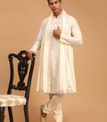 Men's Cream Viscose Kurta, Pyjama & Dupatta Set