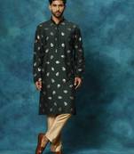 Fabric: Cotton Blend | Contents: a A Skilfully-Crafted Piece Holds Immense Value, All Over Embroidered Kurta Pyjama Set For MenA Skilfully-Crafted Piece Holds Immense Value, All Over Embroidered Kurta Pyjama Set For MenMedium length and Regular Fit. Our Kurta fitting is usually slightly relaxed compared to a Regular Shirt's fitting. Select your Kurta size based on your chest dimension. Note: if one has a heavier abdomen compared to chest then he should select one size bigger kurta. Our Churidar Pajamas have drawstrings and a separate pocket attached to it. The pyjama bottom mohri is usually kept narror to bring out the best possible churi look. Although popularly known as Kurta Pyjama but this ethnic wear for men can be suitably used as pathani suit for men stylish, jubba for men, panjabi for men or khan dress for men stylish. Most material used for kurta under 300 tensil count only. These are good alternative to a Indo western or a sherwani. Check out for kurta for mens new looks, kurta for mens wedding, punjabi kurta for men.All our kurtas have five inches loosening over the body measurement. So if your chest round measurement is 38 inches then you should go for a 38 (Medium) size Kurta which will have a garment ready chest measurement of 43 inches. We offer six sizes - Small = 36 (Chest - 41), Medium = 38 (Chest - 43), Large = 40 (Chest - 45), X- Large = 42 (Chest - 47), XX - Large = 44 (Chest - 49) and XXX - Large = 46 (Chest - 51). Suitable for: Party, Weddings, Regular Wear, Celebrations, Occasions, Festivals, Lohri, Pongal, Makar Sakranti, Baisakhi, Holi, Eid, Raksha Bandhan, Dussehra, Diwali, Navratri, Pooja, Christmas, Onam, Ganesh Chaturthi, Janmasthmi and Gifts for Mens.Wash Care Instructions: Dry Clean preferably or cold light wash.Disclaimer: We have made a consistent effort to make the colors and finishes similar to the image of the products you see on screen. However, the actual product and the images on the website can differ! Customer's discretion is advised.