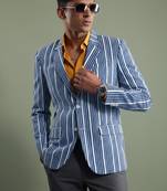 Fabric: Cotton | Contents: a Indigo Stripe Thread Work Straight Blazer,Versatile To Be Adorned Over Shirt And Trouser.Indigo Stripe Thread Work Straight Blazer,Versatile To Be Adorned Over Shirt And Trouser.Vastramay introduces a collection of single-breasted two button blazer, that has double vents at the back with a notched collar crafted with a sharp cut and modern design. Featuring a solid pattern and slim fit.Select your Jacket size based on your chest dimension. Note: if one has a heavier abdomen compared to chest then he should select one size bigger Jacket. Jackets should have fitted look compared to a Kurta,100% Made In India.Wash Care Instructions: Dry Clean preferably or cold light wash.Disclaimer: We have made a consistent effort to make the colors and finishes similar to the image of the products you see on screen. However, the actual product and the images on the website can differ! Customer's discretion is advised. Suitable for: Party, Weddings, Regular Wear, Celebrations, Occasions, Festivals, Lohri, Pongal, Makar Sakranti, Baisakhi, Holi, Eid, Raksha Bandhan, Dussehra, Diwali, Navratri, Pooja, Christmas, Onam, Ganesh Chaturthi, Janmasthmi and Gifts for Mens.