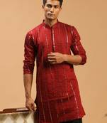 Men's Maroon Viscose Kurta