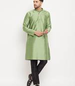 Men's Mint Green And Black Silk Blend Kurta Pyjama Set
