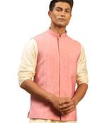 Men's Pink Cotton Blend Nehru Jacket
