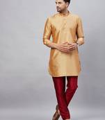 Men's Rose Gold And Maroon Cotton Blend Kurta Pyjama Set