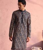 Fabric: Georgette | Contents: a Contrast embroidered georgette kurta, ideal for festivities.Contrast embroidered georgette kurta, ideal for festivities.Medium length and Regular Fit. Our Kurta fitting is usually slightly relaxed compared to a Regular Shirt's fitting. Select your Kurta size based on your chest dimension. Note: if one has a heavier abdomen compared to chest then he should select one size bigger kurta. Our Churidar Pajamas have drawstrings and a separate pocket attached to it. The pyjama bottom mohri is usually kept narror to bring out the best possible churi look. Although popularly known as Kurta Pyjama but this ethnic wear for men can be suitably used as pathani suit for men stylish, jubba for men, panjabi for men or khan dress for men stylish. Most material used for kurta under 300 tensil count only. These are good alternative to a Indo western or a sherwani. Check out for kurta for mens new looks, kurta for mens wedding, punjabi kurta for men.All our kurtas have five inches loosening over the body measurement. So if your chest round measurement is 38 inches then you should go for a 38 (Medium) size Kurta which will have a garment ready chest measurement of 43 inches. We offer six sizes - Small = 36 (Chest - 41), Medium = 38 (Chest - 43), Large = 40 (Chest - 45), X- Large = 42 (Chest - 47), XX - Large = 44 (Chest - 49) and XXX - Large = 46 (Chest - 51). Suitable for: Party, Weddings, Regular Wear, Celebrations, Occasions, Festivals, Lohri, Pongal, Makar Sakranti, Baisakhi, Holi, Eid, Raksha Bandhan, Dussehra, Diwali, Navratri, Pooja, Christmas, Onam, Ganesh Chaturthi, Janmasthmi and Gifts for Mens.Wash Care Instructions: Dry Clean preferably or cold light wash.Disclaimer: We have made a consistent effort to make the colors and finishes similar to the image of the products you see on screen. However, the actual product and the images on the website can differ! Customer's discretion is advised.