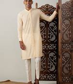 Fabric: Georgette | Contents: a Box Pattern Chikankari Georgette kurta And Pant Style Pyjama For MenBox Pattern Chikankari Georgette kurta And Pant Style Pyjama For MenMedium length and Regular Fit. Our Kurta fitting is usually slightly relaxed compared to a Regular Shirt's fitting. Select your Kurta size based on your chest dimension. Note: if one has a heavier abdomen compared to chest then he should select one size bigger kurta. Our Churidar Pajamas have drawstrings and a separate pocket attached to it. The pyjama bottom mohri is usually kept narror to bring out the best possible churi look. Although popularly known as Kurta Pyjama but this ethnic wear for men can be suitably used as pathani suit for men stylish, jubba for men, panjabi for men or khan dress for men stylish. Most material used for kurta under 300 tensil count only. These are good alternative to a Indo western or a sherwani. Check out for kurta for mens new looks, kurta for mens wedding, punjabi kurta for men.All our kurtas have five inches loosening over the body measurement. So if your chest round measurement is 38 inches then you should go for a 38 (Medium) size Kurta which will have a garment ready chest measurement of 43 inches. We offer six sizes - Small = 36 (Chest - 41), Medium = 38 (Chest - 43), Large = 40 (Chest - 45), X- Large = 42 (Chest - 47), XX - Large = 44 (Chest - 49) and XXX - Large = 46 (Chest - 51). Suitable for: Party, Weddings, Regular Wear, Celebrations, Occasions, Festivals, Lohri, Pongal, Makar Sakranti, Baisakhi, Holi, Eid, Raksha Bandhan, Dussehra, Diwali, Navratri, Pooja, Christmas, Onam, Ganesh Chaturthi, Janmasthmi and Gifts for Mens.Wash Care Instructions: Dry Clean preferably or cold light wash.Disclaimer: We have made a consistent effort to make the colors and finishes similar to the image of the products you see on screen. However, the actual product and the images on the website can differ! Customer's discretion is advised.