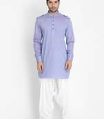 Vm Men's Blue Cotton Blend Kurta And Patiala Set