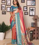 We offers Paithani & Kanjeevaram Softy Silk blend Saree with Rich intricate Meenakari Golden Zari Jacquard work at all over Body, Border & Grand Pallu. Blouse, Border and Pallu have very fine contrast color matching with Saree body. Also Saree have beautiful Zalar work at Saree Pallu. Saree & Blouse Material is Tissue Silk blend which very Soft and Skin Friendly material. This Saree has a length 6.30 Meter which Includes 0.8 meters of the blouse. These new Bollywood designer fashionable saree for women can be used as Party wear saree, Festival saree, wedding saree on every Occasions. Product colour may slightly very due to photographic lighting sources or your monitor settings.