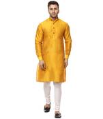 Yellow Raw Silk Plain Kurta And Pyjama Set