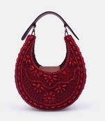 • Maroon clutch with intricate Moroccan-inspired stone and bead embellishments for a rich, artisanal look.