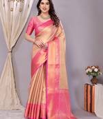 Pink Woven Banarasi Organza Saree With Blouse