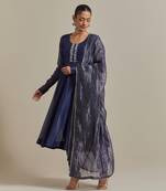 • Product Id : 4535216 • Package Details : 1 Kurta / 1 Churidar / 1 Dupatta • Type : Anarkali Suit • Occasion : Wedding • Fabric : Chanderi • Work : Embroidered • Type : Resham Embroidery • Look : Traditional • Sleeve : Full Sleeve • Color : Blue • Stitching : Stitched • Length : 45.0 Payments [+]