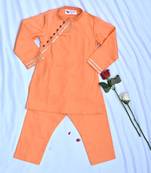 Kurta - Cotton Kurta In A Orange Colour With Decorated Placket.
