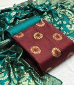 • Product Id : 3676674 • Package Details : 1 Top/1 Bottom /1dupatta • Type : Kurta Sets • Occasion : Festive • Type : Banarasi Silk • Look : Traditional • Sleeve : Half Sleeve • Neck Style : Round Neck • Stitching : Unstitched • Color : Maroon • Fabric : Banarasi Silk • Work : Banarasi Stitching [+]