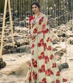 Cream Georgette Floral Printed Fancy Slim Lace Border Saree With Blouse