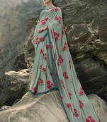 Grey Sufiya Georegtte Floral All Over Printed & Lace Border Saree With Banglori Blouse