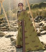 Mehendi Sufiyana Satin Floral All Over Printed & Lace Border Saree With Banglory Blouse