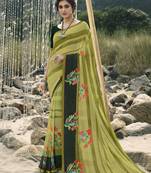 Olive Green Sufiya Georegtte Floral All Over Printed & Lace Border Saree With Banglori Blouse