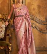 Pink Silk Designer Border And Pallu With Blouse And Saree For Women