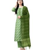 • Product Id : 4346404 • Package Details : 1 Kurta/1 Pant/1dupatta • Type : Cotton Kurtis • Occasion : Casual • Fabric : Cotton • Work : Embroidered • Type : Hand Embroidery • Look : Designer • Sleeve : Quarter Sleeve • Neck Style : Round Neck • Color : Green • Stitching : Stitched Payments [+]