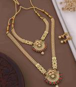 • Product Id : 4634556 • Package Details : 1 Long Necklace/1 Necklace/1 Pair Of Earring • Type : South Indian Jewellery • Occasion : Wedding • Look : Fashion • Jewellery Work : Gold Plated • Color : Gold • Plating : Yellow Gold • Base Material : Brass • Certification : Brand Certification • Pearl Type : Na • Care : Keep Away From Water, Perfume, And Other Chemicals.Clean Gently With A Soft, Dry Cloth After Every Use. • Finish : Matte Payments [+]