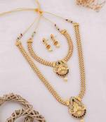 • Product Id : 4634561 • Package Details : 1 Long Necklace/1 Necklace/1 Pair Of Earring • Type : South Indian Jewellery • Occasion : Wedding • Look : Fashion • Jewellery Work : Gold Plated • Color : Gold • Plating : Yellow Gold • Base Material : Brass • Certification : Brand Certification • Pearl Type : Na • Care : Keep Away From Water, Perfume, And Other Chemicals.Clean Gently With A Soft, Dry Cloth After Every Use. • Finish : Matte Payments [+]