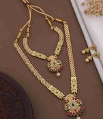 • Product Id : 4634550 • Package Details : 1 Long Necklace/1 Necklace/1 Pair Of Earring • Type : South Indian Jewellery • Occasion : Wedding • Look : Fashion • Jewellery Work : Gold Plated • Color : Gold • Plating : Yellow Gold • Base Material : Brass • Certification : Brand Certification • Pearl Type : Na • Care : Keep Away From Water, Perfume, And Other Chemicals.Clean Gently With A Soft, Dry Cloth After Every Use. • Finish : Matte Payments [+]