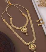 • Product Id : 4634560 • Package Details : 1 Long Necklace/1 Necklace/1 Pair Of Earring • Type : South Indian Jewellery • Occasion : Wedding • Look : Fashion • Jewellery Work : Gold Plated • Color : Gold • Plating : Yellow Gold • Base Material : Brass • Certification : Brand Certification • Pearl Type : Na • Care : Keep Away From Water, Perfume, And Other Chemicals.Clean Gently With A Soft, Dry Cloth After Every Use. • Finish : Matte Payments [+]