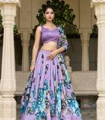 • Style : Circular Lehenga • Color : Lavender • Fabric : Tussar Silk • Work : Floral Print Blouse Details