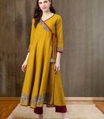 Women's Cotton Slub Patch Work Angrakha Kurta (Mustard)